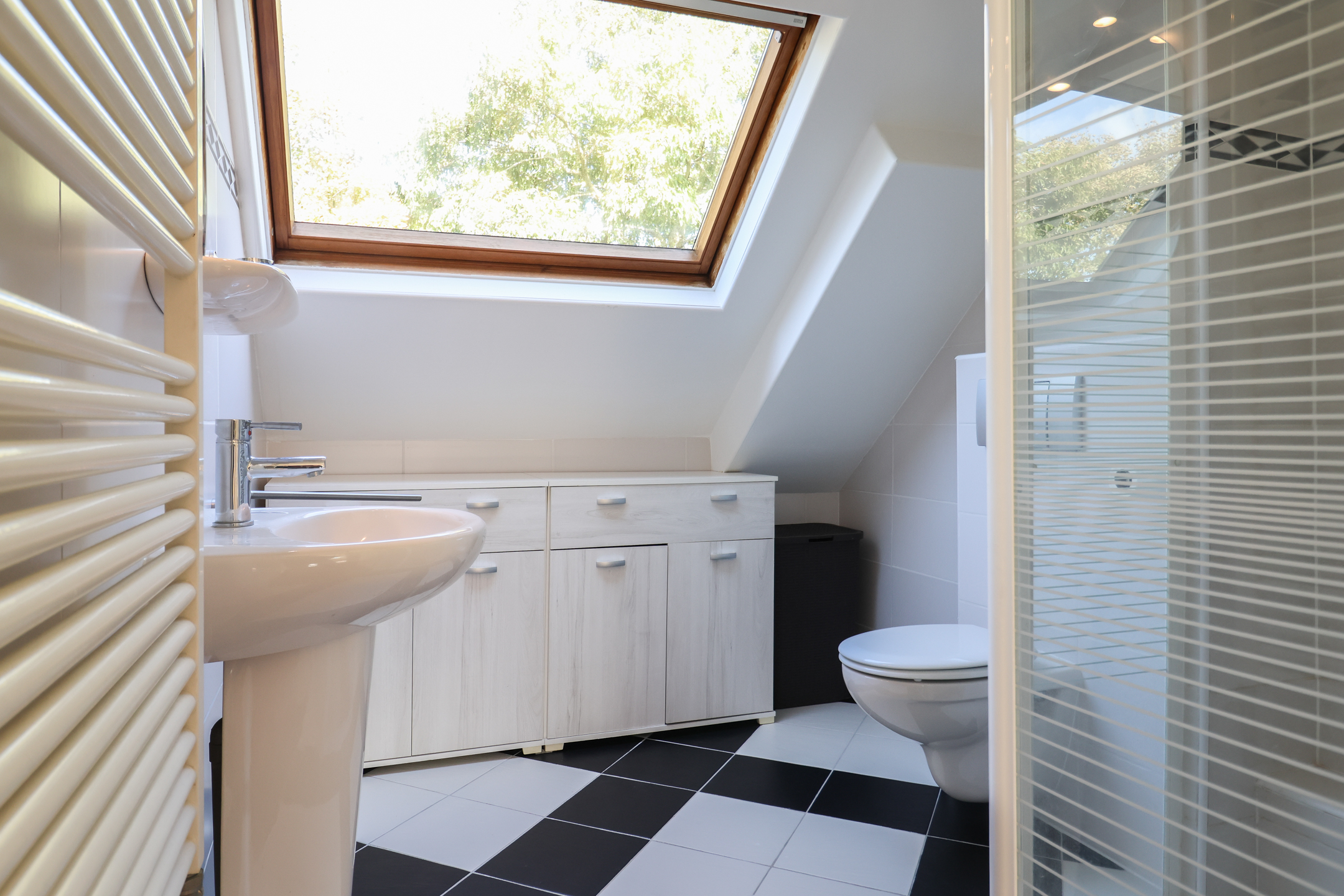 Drie slaapkamers van goed formaat, waarvan één is voorzien van een airco. De badkamer beschikt over een inloopdouche, tweede toilet en wastafelmeubel.