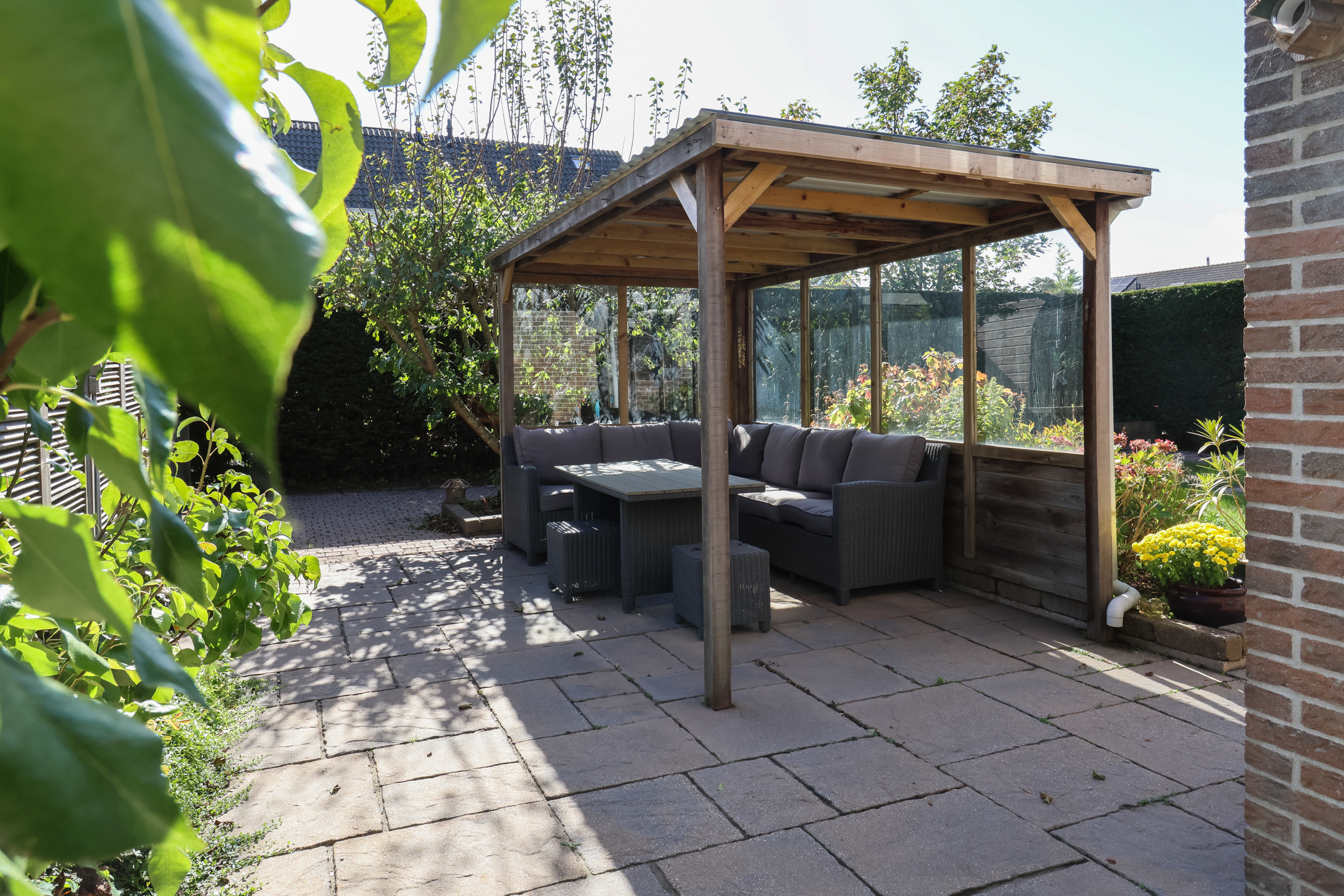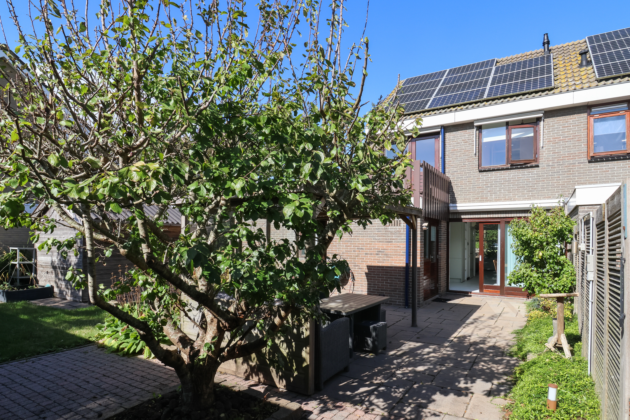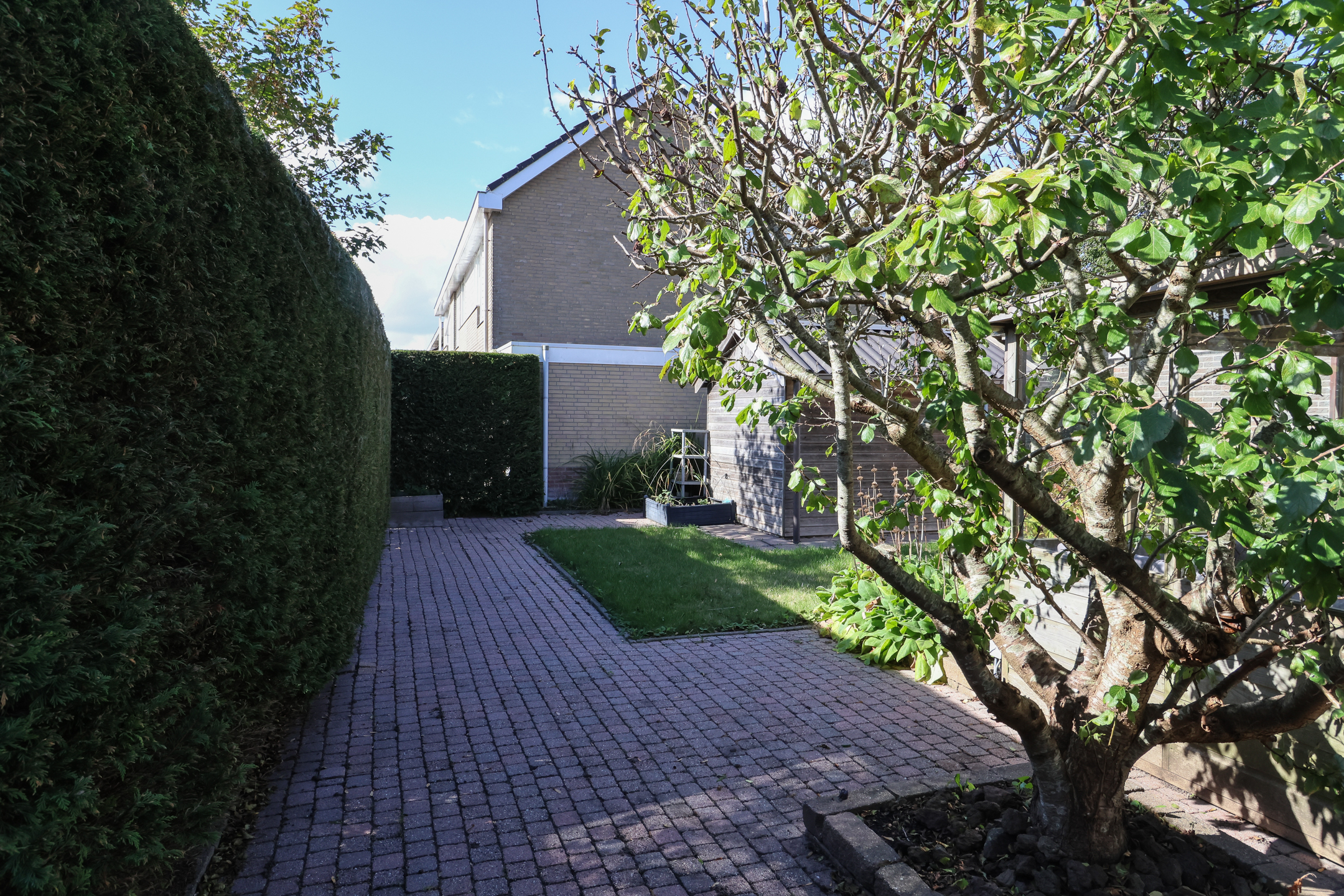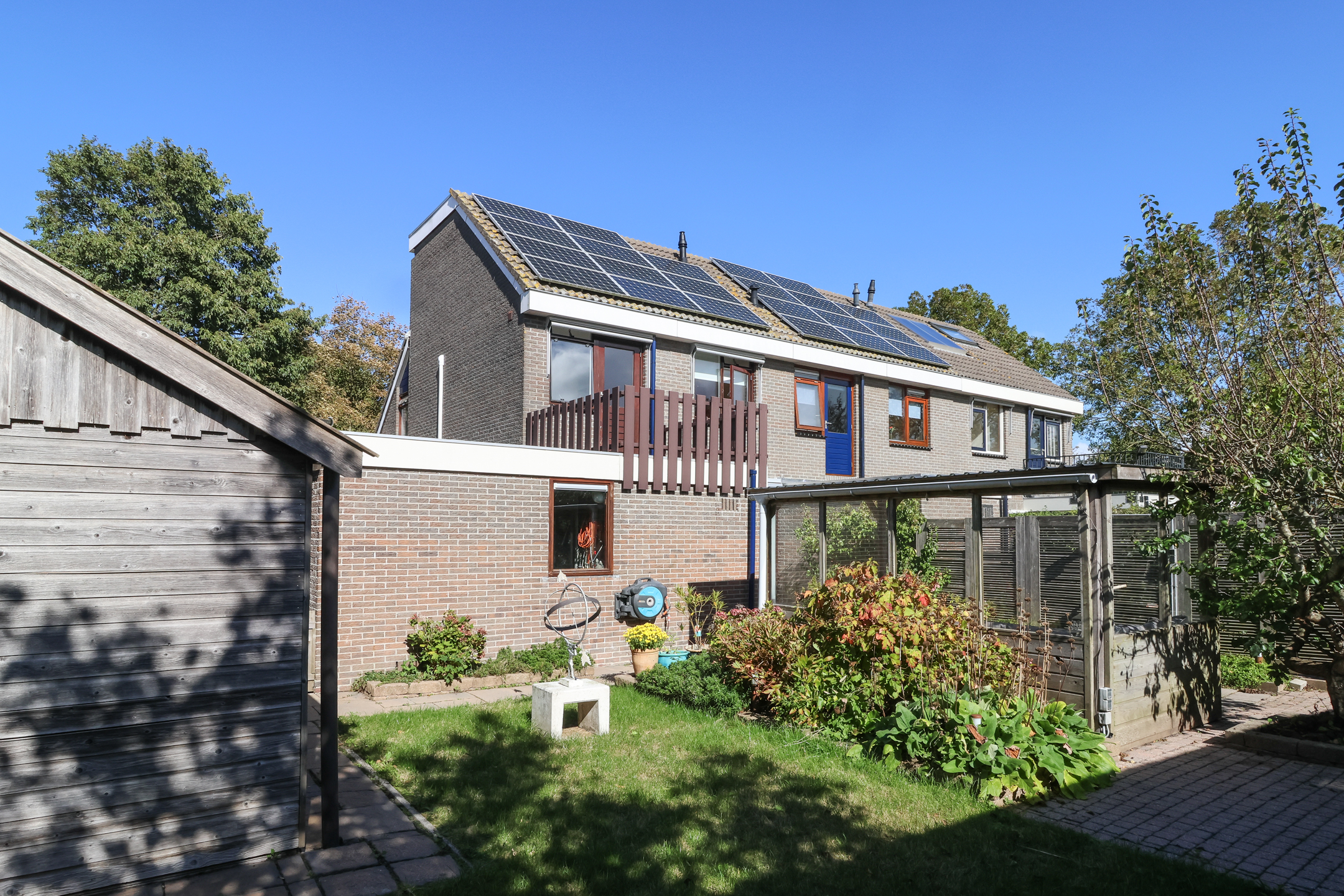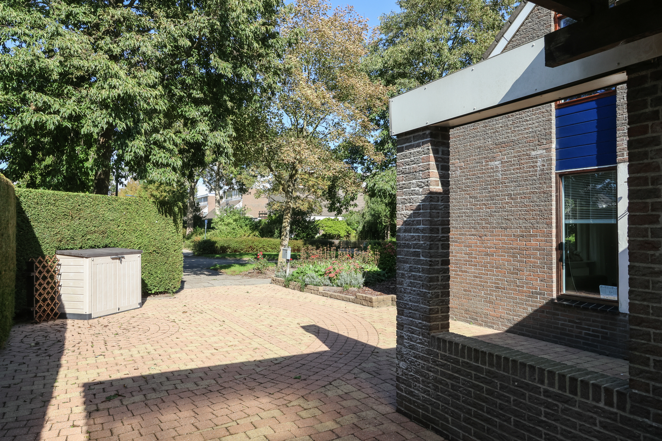 De fraai aangelegde tuin is gelegen op het zonnige zuiden en biedt volop privacy. Dankzij de speelse indeling kunnen er diverse zithoekjes worden gecreëerd om op elk moment van de dag te kunnen genieten van zon of schaduw.
