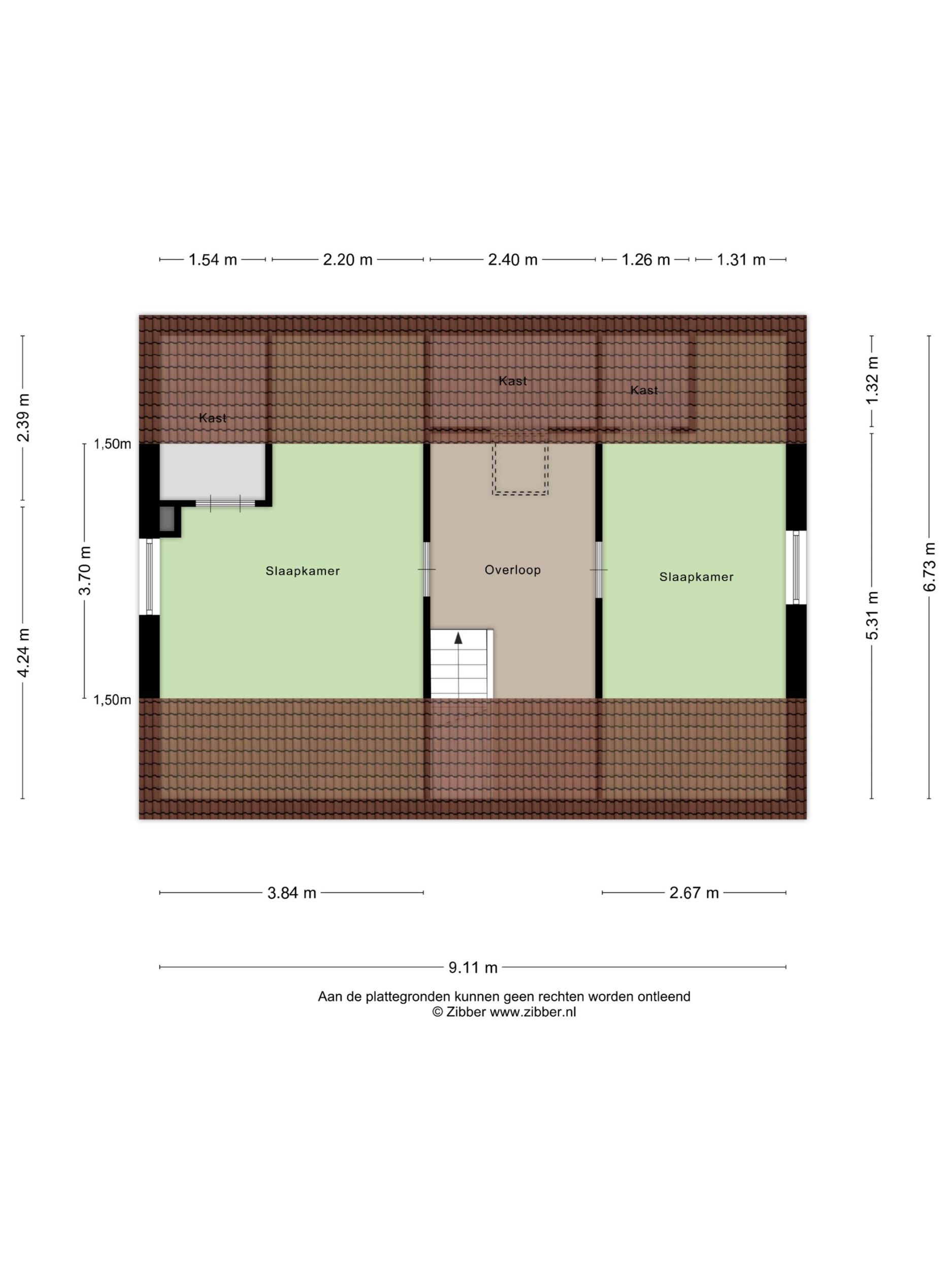 Op de verdieping bevinden zich nog twee slaapkamers.