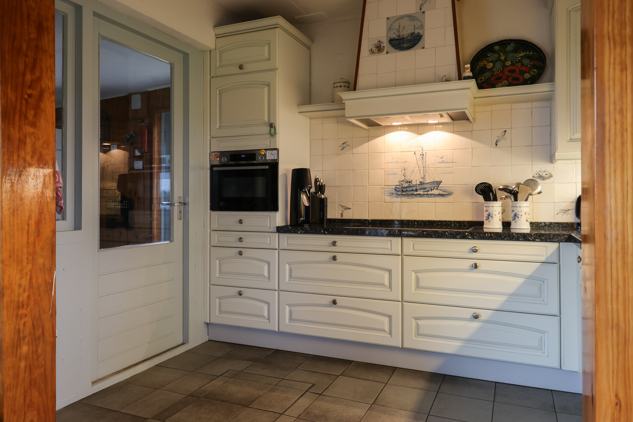 Entree met meterkast en trapopgang naar de verdieping. Aan de rechterzijde bevindt zich de slaapkamer en de badkamer. Aan de linkerzijde van de woning vind je de sfeervolle woonkamer met een prachtig, weids uitzicht over de omliggende landerijen. De open hoekkeuken is voorzien van een inductiekookplaat, combimagnetron en vaatwasser. Aangrenzend aan de keuken is een praktische bijkeuken met extra opbergruimte en witgoedaansluitingen.