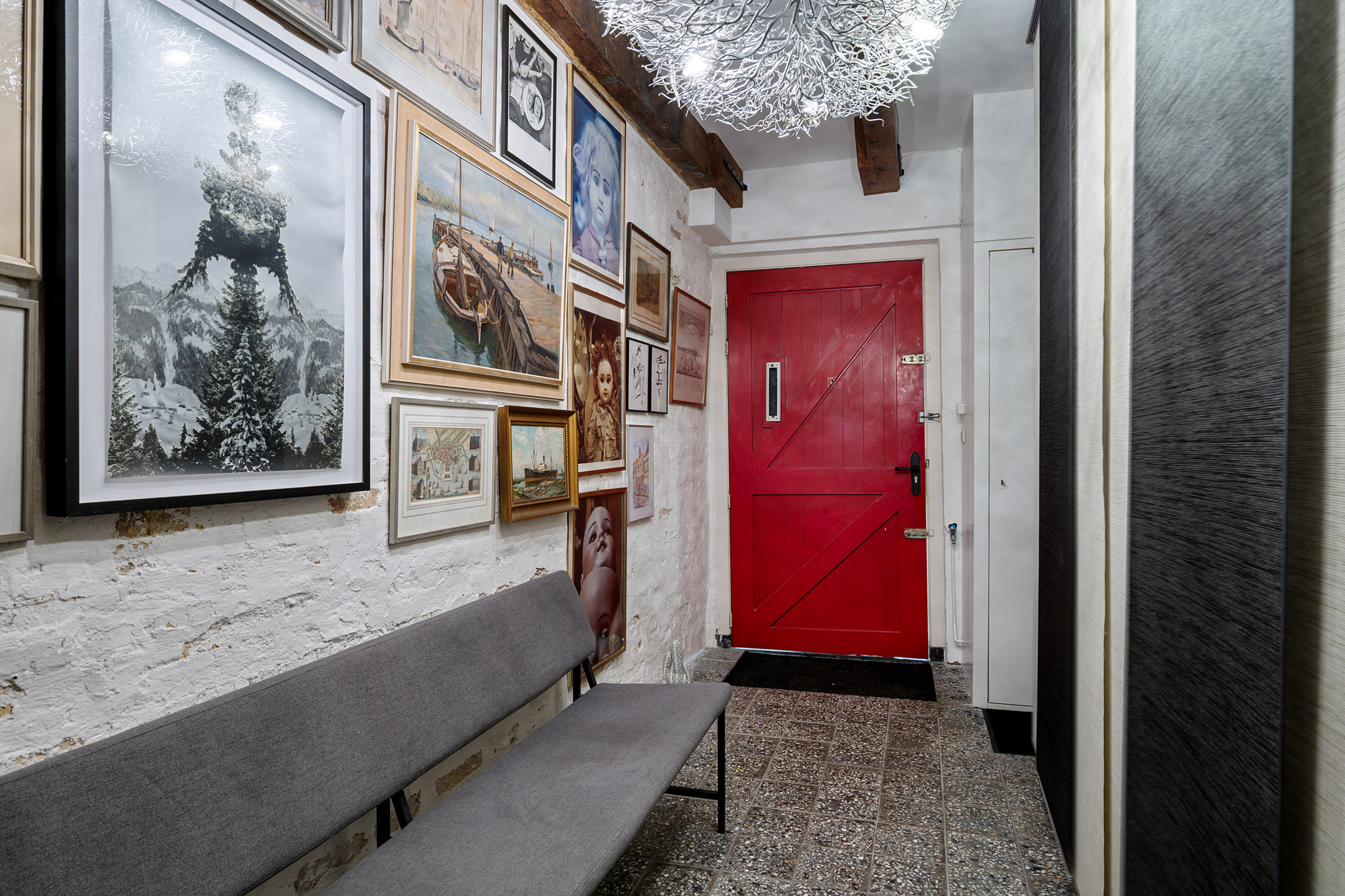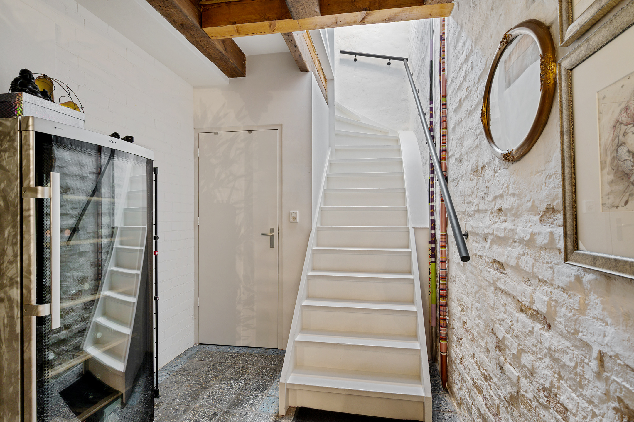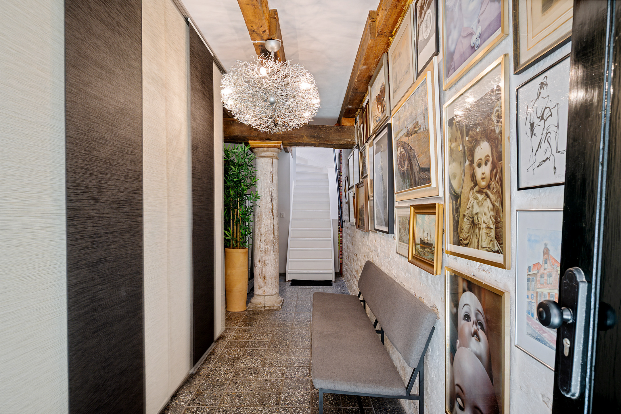 Ruime entree die tevens dienstdoet als berging voor bijvoorbeeld fietsen. Ook hier zie je direct de karakteristieke elementen terug.