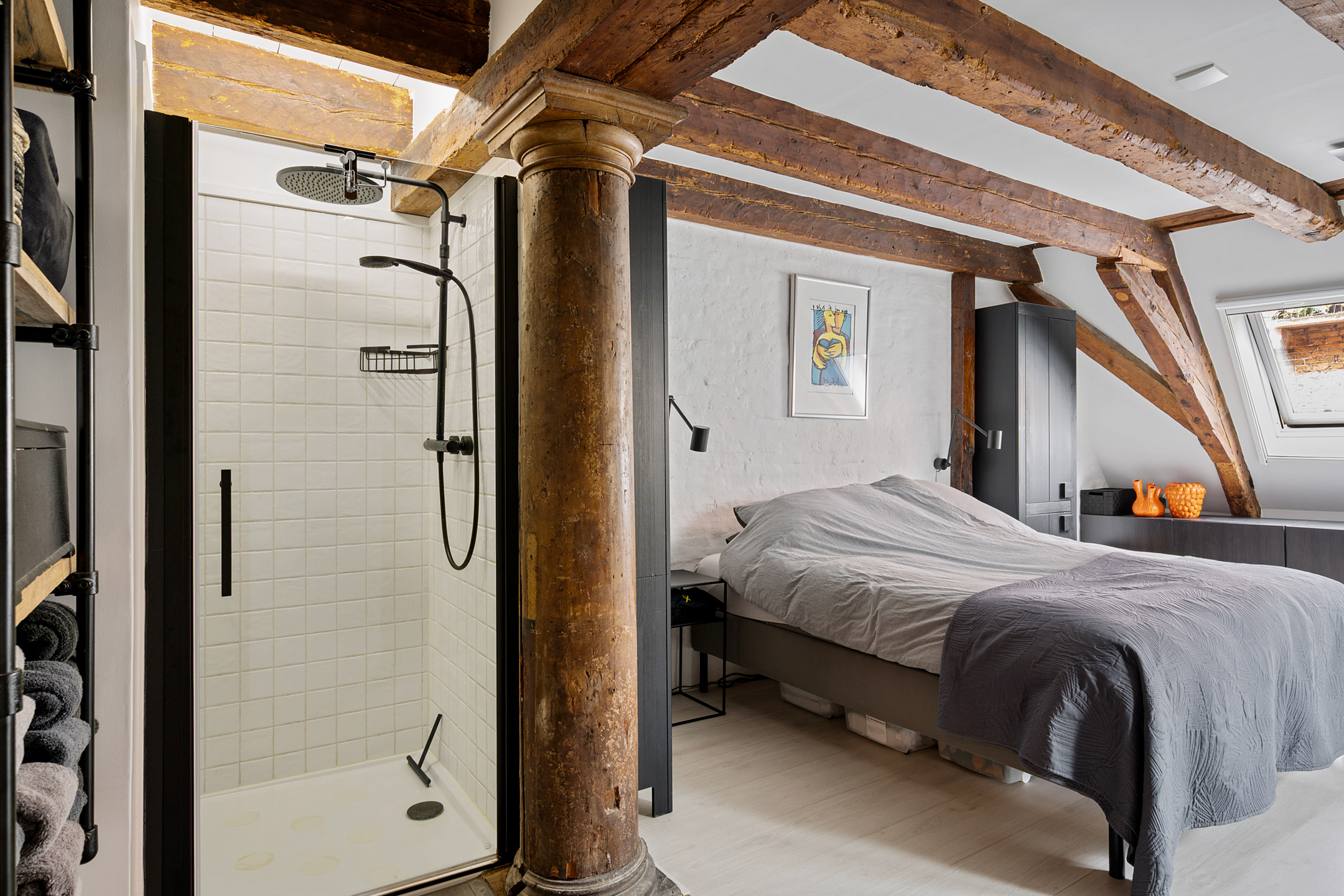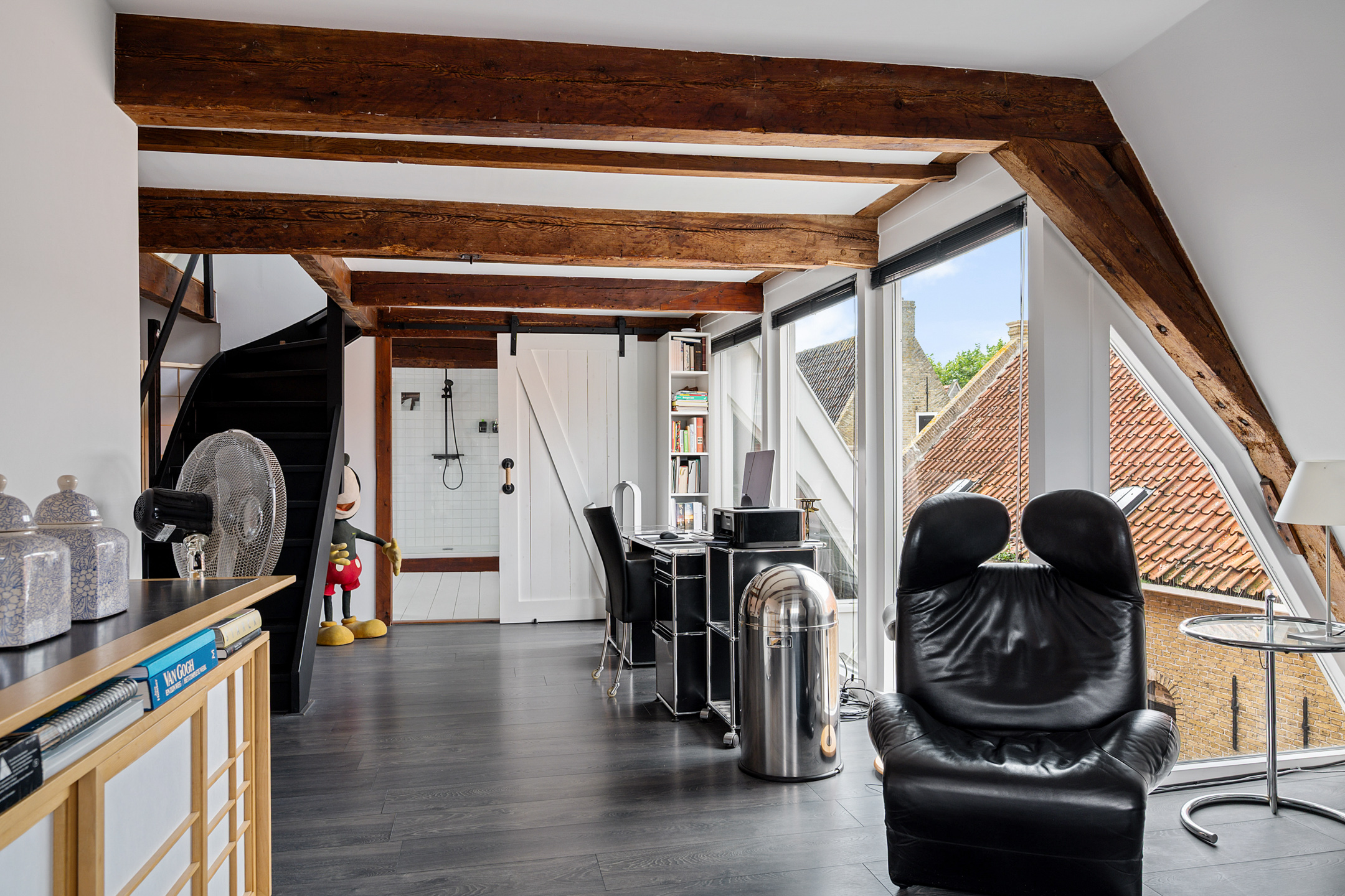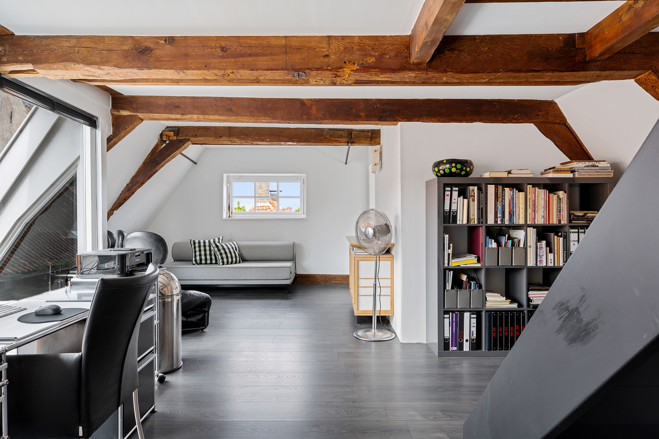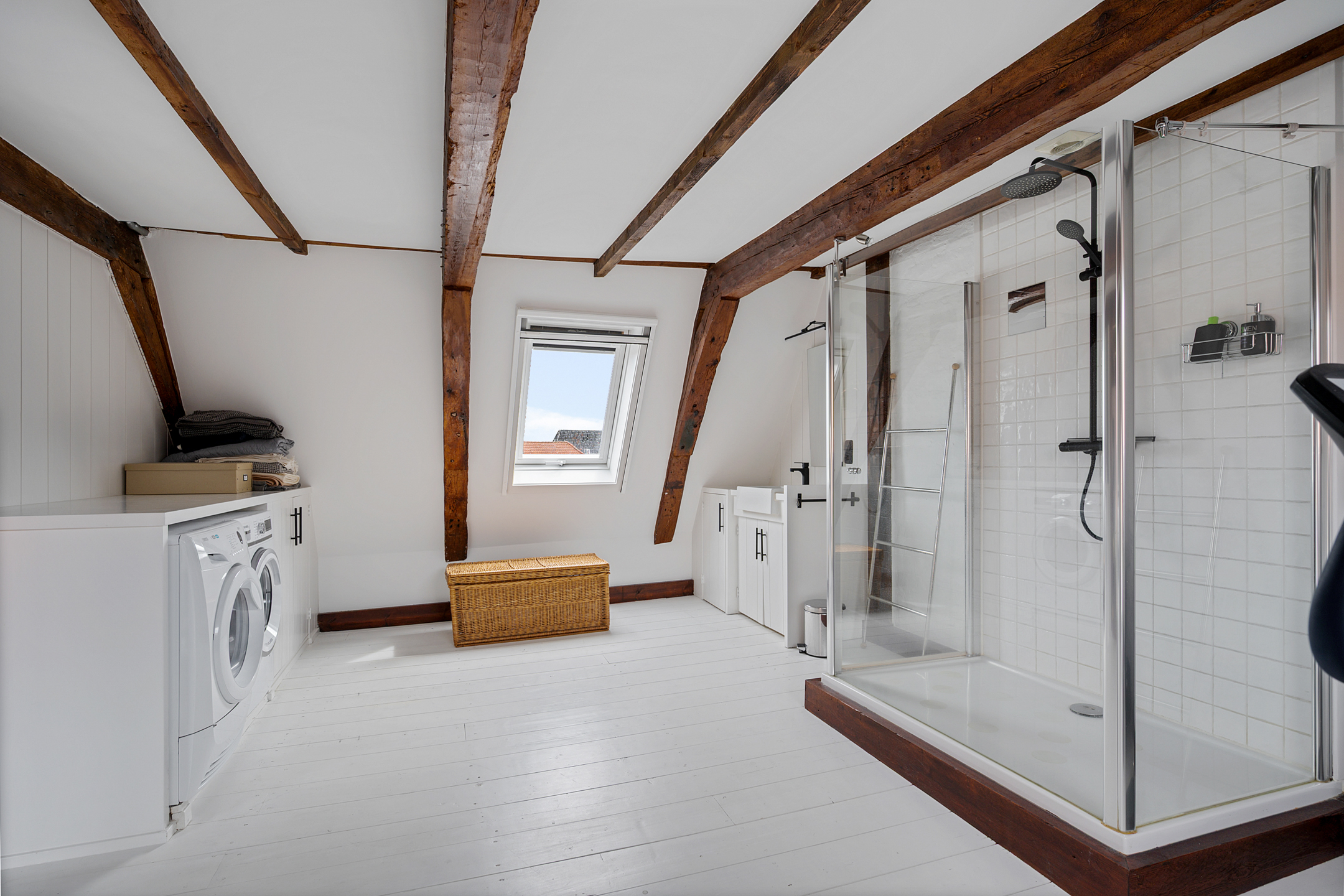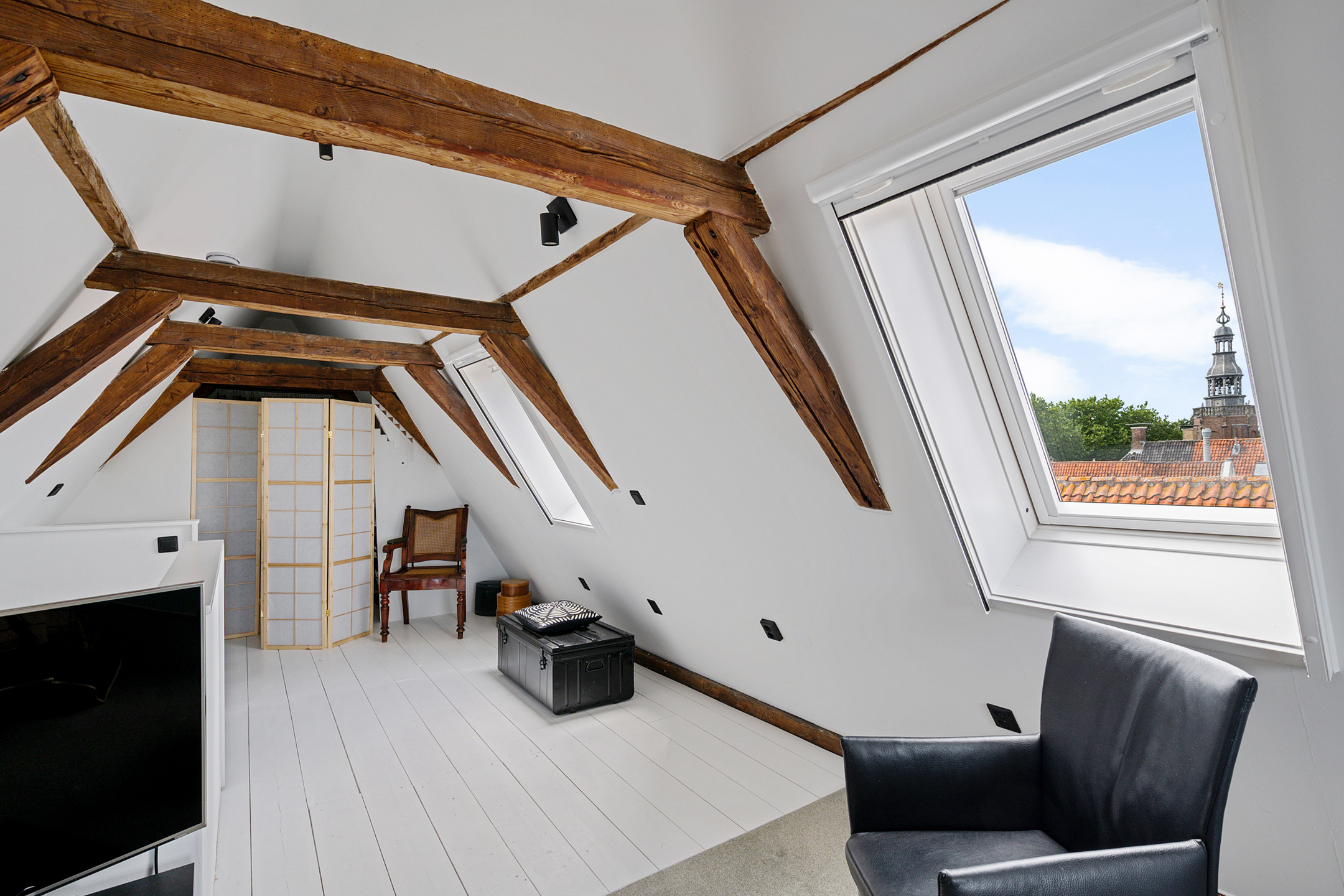 Op de bovenste verdieping is nog een lichte slaapkamer, wederom met veel daglicht dankzij de dakramen.