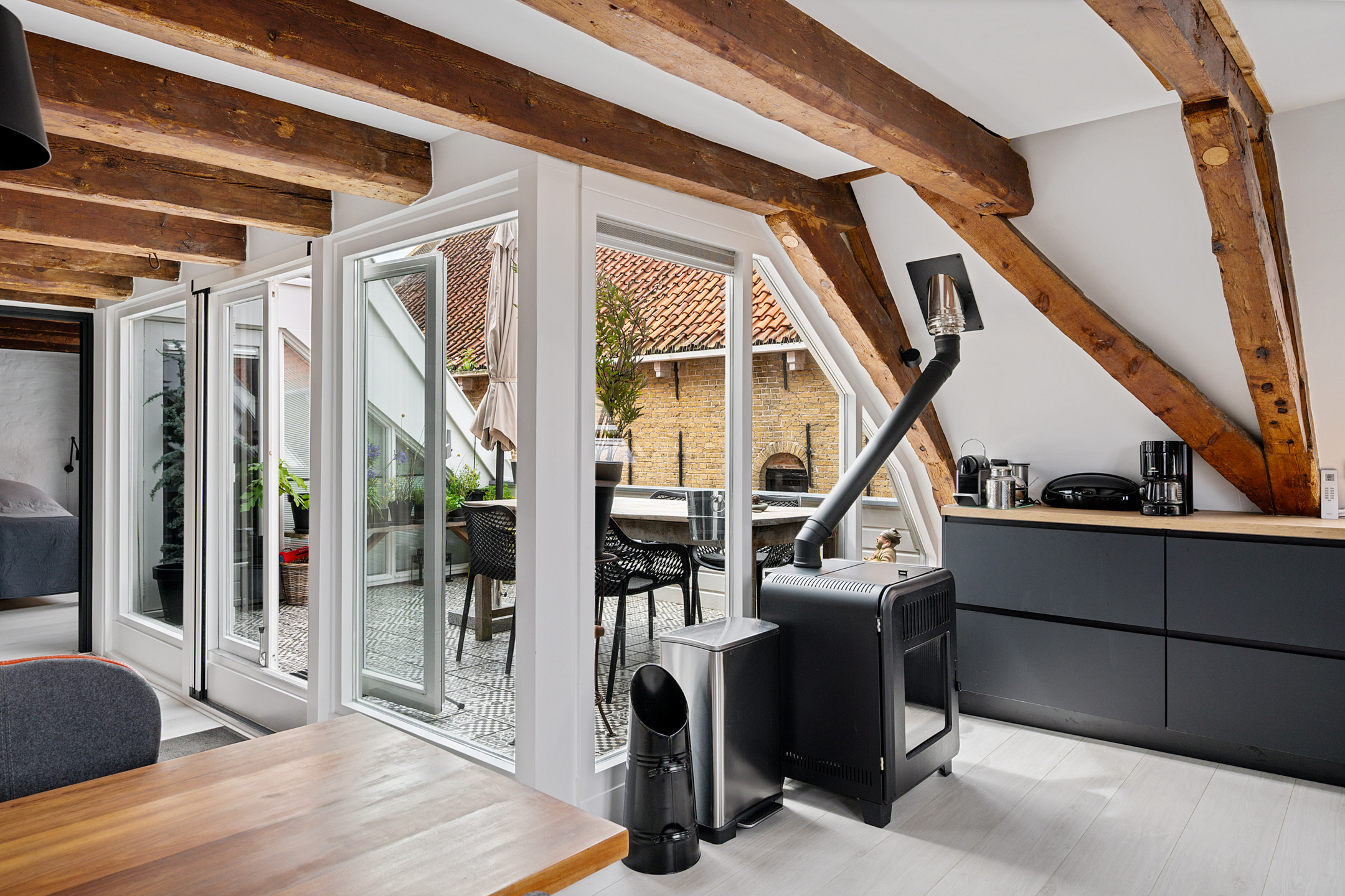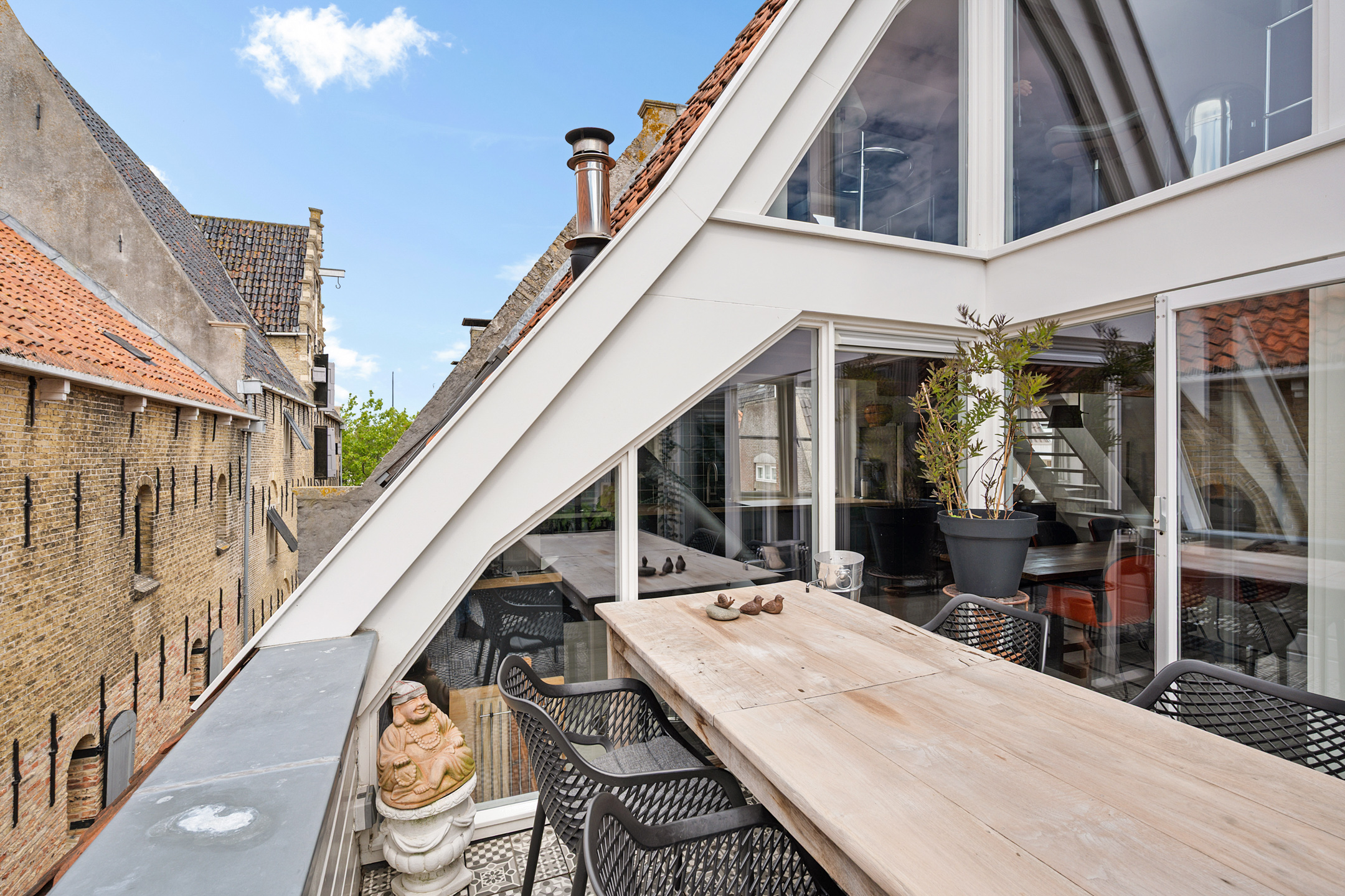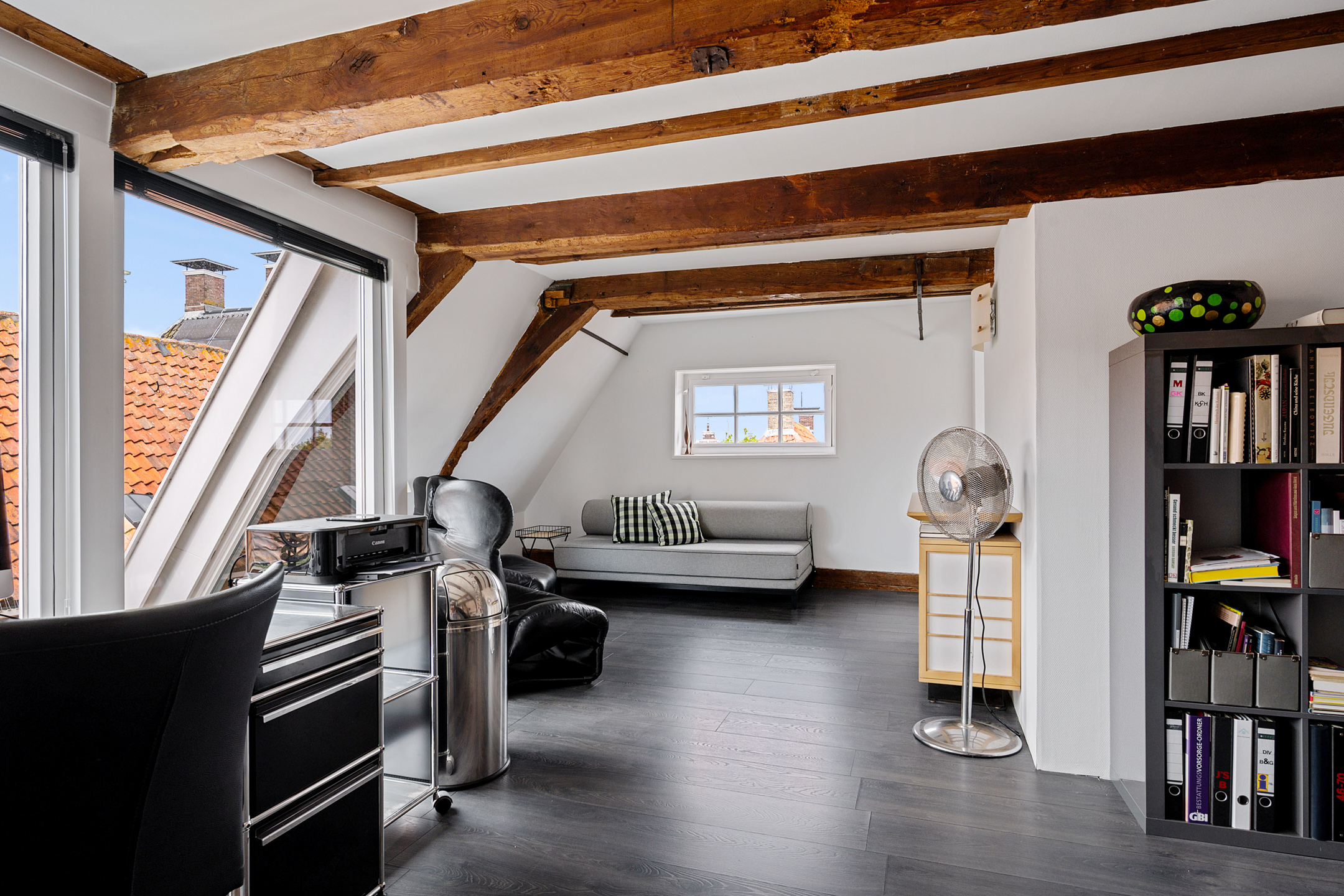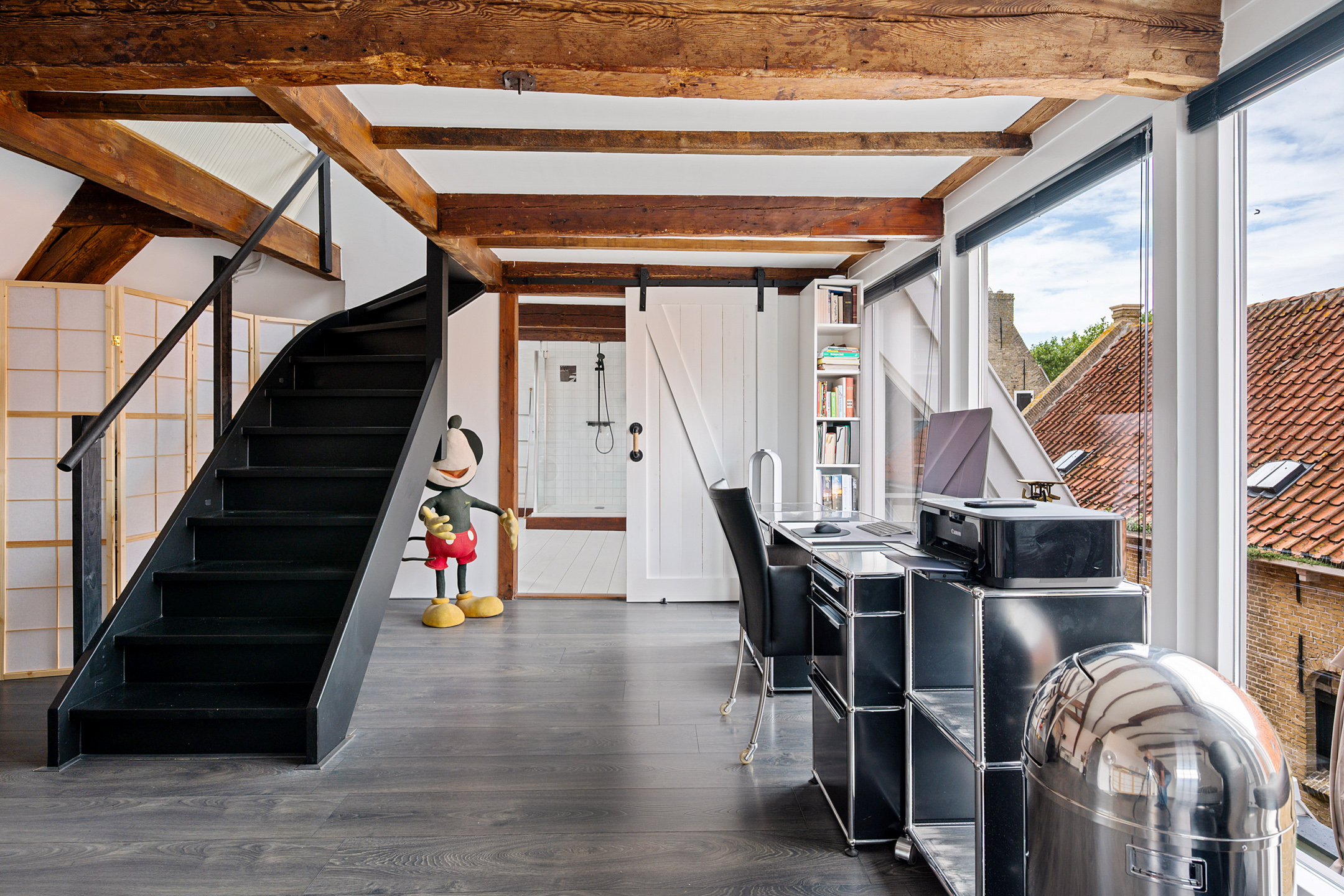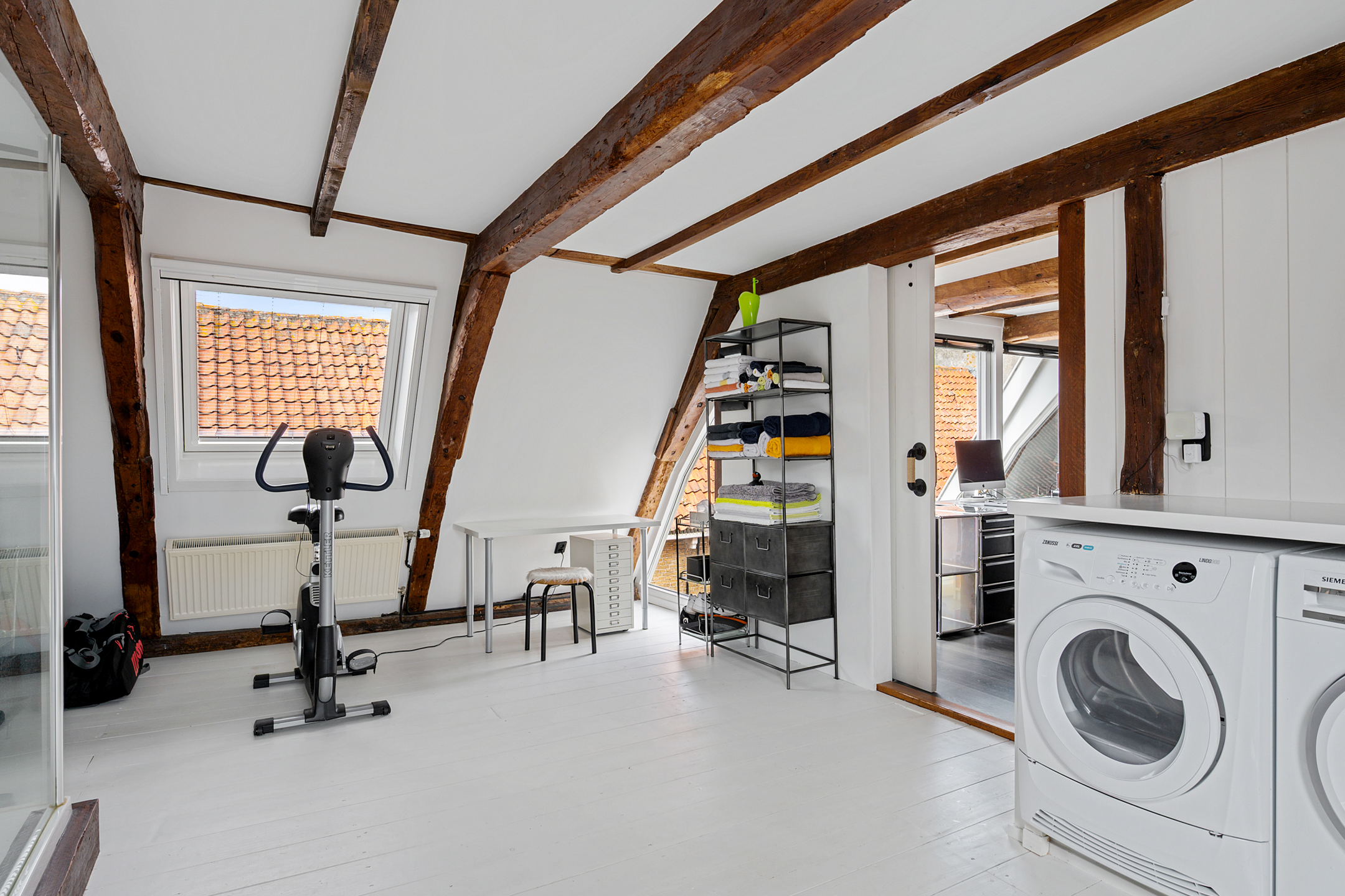 Op de bovenste verdieping is nog een lichte slaapkamer, wederom met veel daglicht dankzij de dakramen.